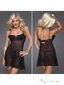 Потрясающая сорочка бэби-долл длиной до колен. Легкая, полупрозрачная, струяшаяся ткань черного цвета повторяет все изгибы Вашего тела. Модель на тонких регулируемых бретельках. Бюст с плотными чашесками Push-up, застегивается сзади на крючки. Спинка наполовину обнажена, имеет небольшой кокетливый вырез. Ажурная окантвка по лифу и низу изделия. В комплекте трусики-стринги на тонких резиночках.