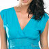 Легкая вискозная туника. Отрезной пояс с вышивкой, завязывающийся сзади. V-образный вырез с нахлестом. Сзади пояс на трикотажной резинке. Два кармана.