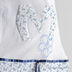 Милая и приятная ночная рубашка из хлопка. Полукруглый вырез горловины. Декоративные пуговицы. Рукава, подол и вырез горловины выполнены из ткани в мелкий узор. Логотип производителя на подоле. Декоративная атласная лента темно-синего цвета по подолу.