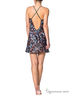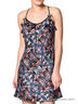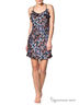 Ночная сорочка до уровня колен полуприлегающего силуэта выполнена из натурального шёлка с дизайнерским фотопринтом. По верхнему краю отделочная окантовка рюша вдоль верхнего края, переходящая на спинку с глубоким вырезом в виде капельки. Тонкие регулирующиеся бретели сзади перекрещиваются.