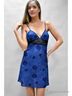 Ночная сорочка полуприлегающего силуэта до уровня колен из принтованного хлопка с натуральным шёлком с рисунком. Спереди по груди фигурная кокетка из кружева и треугольные чашки с мягкими складками под грудью, выполненные из основного полотна. Сзади вдоль верхнего края широкая кружевная вставка. Сорочка на тонких регулирующихся бретелях.