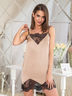 Ночная сорочка из струящегося материала. Модель на тонких регулируемых бретельках. Элегантный вырез на кокетке и фигурный подол изделия оформлены нежным кружевом.