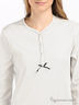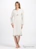 Комфортная и элегантная ночная сорочка из приятного на ощупь трикотажа в мелкий черный горох. Круглая горловина. Планка-застежка на пуговицах. Длинные рукава. Подол украшен тюлевой вставкой с атласной вышивкой.