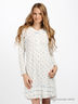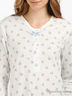 Очаровательная ночная сорочка в нежный голубой цветочек из трикотажа "лапша". Круглая горловина. Планка-застежка на пуговицах. Многоярусный подол декорирован атласной лентой.