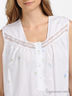 Ночная сорочка прямого покроя из гладкого батиста белого цвета с нежным и элегантным цветочным принтом. Вырез каре. На полочке планка-застежка на пуговицах. Кокета украшена вставками из тюли с атласной летной.