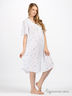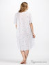 Нежная и воздушная ночная сорочка из жатого батиста с цветочным принтом. Фигурный вырез горловины. Короткие рукава. На полочке планка-застежка. Декорирована атласной лентой.