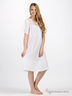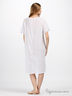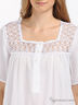 Легкая и воздушная ночная сорочка из жатого батиста. Вырез каре окантован атласной лентой. Короткие рукава. Полочка украшена тюлью с атласной вышивкой.