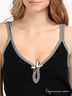 Слегка приталенная ночная сорочка из трикотажа в рубчик. Тонкие двойные бретельки. V-образный вырез с бантиком и вырезом-капелькой. Низ изделия декорирован полосатой вставкой с небольшими игривыми разрезами.