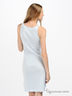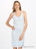 Ночная сорочка нежно-голубого цвета из трикотажа "лапша". Тонкие бретельки. Круглая горловина. Декорирована тюлевыми вставками с атласной вышивкой. Многоярусный подол украшен атласной лентой.