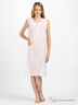 Легкая сорочка розового цвета из жатого батиста. Круглая горловина. Планка-застежка на пуговицах. Горловина и полочка декорированы кружевом и оборками.