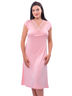 Сорочка женская из однотонного вискозного трикотажного полотна. V-образный вырез горловины украшен ажурной вышивкой. Небольшая мягкая сборка на груди. Короткий цельнокроеный рукав. Силуэт полуприлегающий, слегка расклешенный к низу.