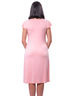 Сорочка женская из однотонного вискозного трикотажного полотна. Верхние детали переда на запах, с мягкой сборкой под грудью. Небольшая мягкая сборка по переду на талии. Линия подреза украшена ажурной вышивкой. Короткий рукав- крылышко. Силуэт полуприлегающий, слегка расклешенный к низу. Длина до колена.
