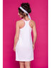 Сорочка белого цвета на узких бретелях аккуратно прилегает по линии декольте и свободно сидит по подолу, обеспечивая комфорт движений. Форма сорочки вдохновлена спортивным стилем, майкой борцовкой легкостью и свободой. Акцентом модели является яркий принт в сочетании с декоративной окантовкой.