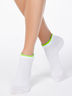 Укороченные спортивные женские носки из хлопка, однотонные с контрастной декоративной отделкой по краю резинки.