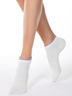 Укороченные спортивные женские носки из хлопка, однотонные с контрастной декоративной отделкой по краю резинки.