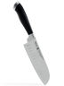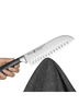 Нож Сантоку предназначен для шинковки овощей, тонкой нарезки, разделки мяса и рыбы. Углубления на поверхности облегчают использование: в них при нарезке остается воздух, поэтому продукты не налипают на лезвие.