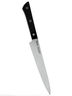 Гастрономический нож - выбор знатоков. Он подойдет для нарезки любых продуктов на идеально тонкие кусочки благодаря длинному и узкому лезвию. Он пригодится и для приготовления блюд японской кухни - суши и сашими.