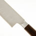 Шефский нож на кухне - это удобная эргономика + отличные режущие результаты. Остриё у него всегда опущено и нож напоминает топорик. Центр тяжести ножа смещен вперед, за счет этого при рубке прикладывается меньше сил.