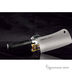 Профессиональный поварской топорик. Обладает оптимальным весом для работы с твердыми продуктами. Угол заточки составляет 40°, заточка держится очень долго, при этом лезвие очень острое. Топор можно повесить на крючок, для этого в лезвии сделано отверстие. Специальная эргономичная геометрия топора, оптимальный баланс клинка и рукояти - значительно облегчает работу. Практичная ножевая японская молибден-ванадиевая сталь AUS8. Эргономичная рукоятка из G-10 не разбухает, не меняет цвет, приятна в руке.
