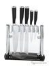 6пр. на подставке из акрила в комбинации с нержав. сталью и пластиком. Ножи: поварской (34см), для тонкой нарезки(33,5см), для резки хлеба(34,5см),универсальный(23см), для очистки(21см), ручки пластм в комбинации с нержав. сталью, толщина лезвий 2-3мм.