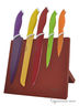 6пр. на деревянной подставке с магнитом. Ножи: поварской (32,5/20,5см), для резки хлеба (30/20,5см), для тонкой нарезки (32/20,5см), универсальный(23/12,7см), для очистки(19,5/9см). Лезвие 1,2-1,8мм с цв. покрытием , ручка из прорезин. пластика с антибакт. покрытием.