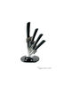 Ножи керамические Pomi d"Oro в наборе на подставке, SET8 Affilato Nero изготовленs из черной керамики Kerano™, длина лезвий - 8, 10, 12, 15 см, толщина 2 мм. Чёрная обрезиненная ручка. Kerano™ - уникальный керамический нано-материал производства Керано Прудиционе СПА, Виа Дей Милле 40, 80121 Неаполь, Италия, который не содержит вредные примеси, вт.ч. перфоктановую кислоту (PTFE) и примеси, используемые для легированной стали. Химически нейтрален, не вступает в химическую реакцию с пищей во время готовки.