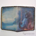 Обложка состоит из 2 отделений: для паспорта и автодокументов. Рисунок - декоративная многоцветная печать по коже, по краям прошита кожаной нитью.