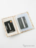 Внутри расположен блок пластиковых файлов для автодокументов - файл для водительского удостоверения нового образца, четыре файла для талона ТО и схожих по размеру документов. Размеры: 14х10х1 см.