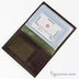 Внутри расположен блок пластиковых файлов для автодокументов - файл для водительского удостоверения нового образца, четыре файла для талона ТО и схожих по размеру документов. Слева расположено отделение с окошком и 2 отделения для визитных/кредитных карт. Размеры: 14х10х1 см.