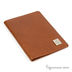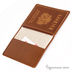Коричневая обложка для паспорта изготовлена из кожи. На лицевой стороне металлический логотип производителя.