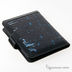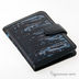 Обложка для автодокументов торговой марки Eleganzza из натуральной кожи с лазерным тиснением синего цвета. Отделка - натуральная кожа черного цвета. Количество дополнительных отделений - 8. Закрывается на клапан с кнопкой.