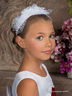 Белый ободок с бантом. Атлас белого цвета декорирован жемчужинами. Главное украшение изделия – цветок и бант из тесьмы и органзы, дополненный сияющим стразом.