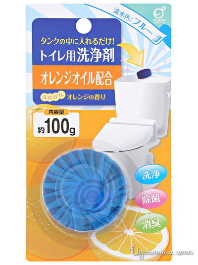 Очищающая и дезодорирующая пенящаяся таблетка для бачка унитаза, окрашивающая воду в голубой цвет (с ароматом апельсина),
