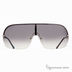 Женские солнцезащитные очки с градиентной монолинзой. Прилегающие к линзам часть дужек выполнены из металла с гравировкой "Benetton".