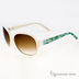 Солнцезащитные очки в округлой пластиковой оправе молочного цвета. Заушники декорированы оригинальным принтом. У основания заушника металлическая накладка с надписью-логотипом Bruno Banani. Линзы с градиентом.