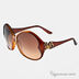 Крупные солнцезащитные очки в полупрозрачной пластиковой оправе. Уголки рамки затемнены. Оригинальный дизайн рамки и заушников. Основание заушников декорировано стилизованными металлическими буквами JG бронзового оттенка.