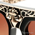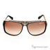 Стильные и изящные солнцезащитные очки в оправе из пластика. Верхняя часть рамки декорирована металлической вставкой с узорами. Внутренняя сторона рамки с перламутровым напылением. Оригинальное дизайнерское решение в виде металлической рельефной вставки у основания заушника. Наконечник слегка изогнутой формы, выполнен из глянцевого пластика черного цвета. Линзы из высококачественного пластика, темно-коричневого цвета.