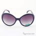 Изысканные солнцезащитные очки. Cостоят из полимерной полупрозрачной (пластиковой) оправы темно-синего цвета, дужек того же цвета. Фирменная гравированная надпись - UNITED COLORS OF BENETTON у основания дужек. Полимерные (поликарбонатные) градиентно окрашенные линзы фиолетового оттенка. Наконечник слегка изогнутой формы, мостик средней толщины.