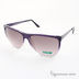 Утонченные солнцезащитные очки. Cостоят из полимерной (пластиковой) градиентно окрашенной оправы фиолетового цвета, дужек из сплава высококачественных металлов фиолетового цвета. Фирменная надпись - UNITED COLORS OF BENETTON у основания дужек. Наконечник дужек выполнен из полимерного пластика. Полимерные (поликарбонатные) градиентно окрашенные линзы коричневого оттенка. Наконечник слегка изогнутой формы, мостик средней толщины.