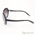 Стильные солнцезащитные очки выполнены в соответствии с последними тенденциями моды. Cостоят из полимерной (пластиковой) оправы формы - стрекоза, дужек оригинальной формы с фирменным логотипом на наконечниках. Полимерные (поликарбонатные) градиентно окрашенные линзы фиолетового оттенка. Наконечник слегка изогнутой формы, мостик средней толщины. Цветовая гамма - черный / золотой.