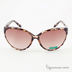 Изящные солнцезащитные очки. Cостоят из полимерной (пластиковой) оправы камуфляжной расцветки, дужек той же расцветки с серебристой вставкой у крепления. Полимерные (поликарбонатные) градиентно окрашенные линзы коричневого оттенка. Наконечник слегка изогнутой формы, мостик средней толщины.