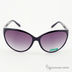 Эффектные солнцезащитные очки. Cостоят из полимерной (пластиковой) оправы черного цвета, дужек того же цвета с серебристой вставкой у крепления. Полимерные (поликарбонатные) градиентно окрашенные линзы фиолетового оттенка. Наконечник слегка изогнутой формы, мостик средней толщины.