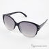 Стильные и эффектные солнцезащитные очки. Cостоят из полимерной (пластиковой) градиентно окрашенной оправы черного цвета с декоративными вставками по бокам, дужек черного цвета. Полимерные (поликарбонатные) градиентно окрашенные линзы фиолетового оттенка. Наконечник слегка изогнутой формы, мостик средней толщины.