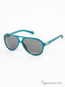Эффектная модель солнцезащитных очков выполнена из высококачественного материала. Наконечник дужек слегка изогнутой формы. Непрозрачная оправа бирюзового цвета. Линзы окрашены в серый цвет. Очки станут для Вас не только необходимым средством защиты от солнца, но и стильным аксессуаром.