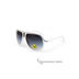 Модные солнцезащитные очки. Состоят из пластиковой оправы белого цвета с декоративной вставкой на мостике, дужек того же цвета. Полимерные (поликарбонатные) с градиентом окрашенные линзы синего оттенка. Широкий мостик, наконечник дужек слегка изогнутой формы.