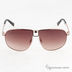 Мужская модель в авангардном стиле. Металлическая рамка золотого цвета цвета. Дужки украшены металлической вставкой с логотипом бренда, полимерные линзы окрашены в коричневый цвет с легким градиентом. Мостик тонкий.
