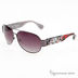 Очки солнцезащитные в комплекте с салфеткой и футляром. Cостоят из металлической оправы черного цвета, дужек той жк расцветки с изящным рисунком цвета с серебристой вставкой-логотипом бренда. Полимерные поликарбонатные линзы, градиентно окрашенные в фиолетовый цвет. Наконечник слегка изогнутой формы, широкий мостик.