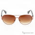 Очки солнцезащитные в комплекте с салфеткой и футляром. Cостоят из металлической оправы черного цвета, дужек той жк расцветки с изящным рисунком цвета с серебристой вставкой-логотипом бренда. Полимерные поликарбонатные линзы, градиентно окрашенные в коричневый цвет. Наконечник слегка изогнутой формы, широкий мостик.
