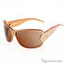 Роскошные очки выполнены в соответствии с последними тенденциями моды в прилегающей к лицу оправе легкой формы нежно-бежевого цвета из высококачественного фрезерованного пластика. Линзы окрашенные в коричневый цвет выполнены из полимерного (поликарбонатного) пластика. Изящные широкие дужки с слегка зауженными наконечниками, декорированы гравированной надписью логотипа бренда, и металлической вставкой у основания. Широкий мостик. В комплекте футляр, протирочная салфетка, паспорт.