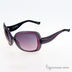Большие креативные солнцезащитные очки в стильной пластиковой оправе. Рамка и заушники декорирована орнаментом лилового цвета. Заушник имеет оригинальную форму. Наконечник слегка изогнутой формы, линзы из высококачественного пластика.